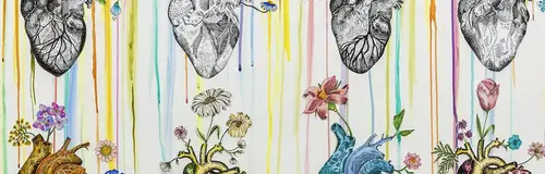 Artist Raynor Bearden illustrated Elizabeth’s story with a vibrant piece that pays tribute to the critical elements that worked together to save her life—Elizabeth’s joyful personality, the role of technology and her expert care team.